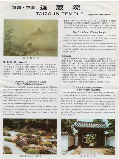 塔頭の退蔵院境内には、国宝「瓢鮎図(ひょうねんず)」(模本)や史跡名勝・枯山水庭園「元信の庭」、そして四季折々の景色が美しい池泉回遊式庭園「余香苑(よこうえん)」などがあります。