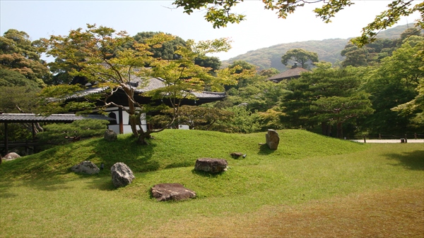 高台寺の庭 方丈から見た開山堂とその南側に位置する庭園の風景