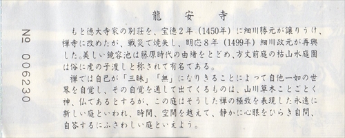 竜安寺の三門 方丈南側の短形の石庭は、15世紀中期につくられたと考えられる京都駅烏丸中央口 (JR)を出てすぐの「バスチケットセンター」内にある、市バス京都駅前案内所で一日乗車券カード(500円)を買う。