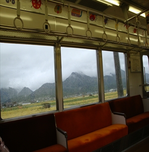 松本から篠ノ井経由で上田に行く途中(普通列車)、窓から外を眺めていると、列車はぐんぐん勾配を登っていき、だいぶ登ったところで、速度を落とし一旦停車する。しかし外を見るとここは駅ではない、と思う間もなく列車は後退をはじめる。これは「スイッチバック」と呼ばれるもので、再び停車したところが姨捨駅標高約551mである。(標高約676mまで急坂を上り、姨捨駅はその途中)日本三大車窓の絶景、善光寺平を一望することができる。